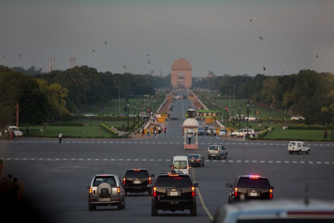 Vice President Joe Biden's motorcade travels towards the India Gate, in New Delhi, India, July 23, 2013. (Official White House Photo by David Lienemann)