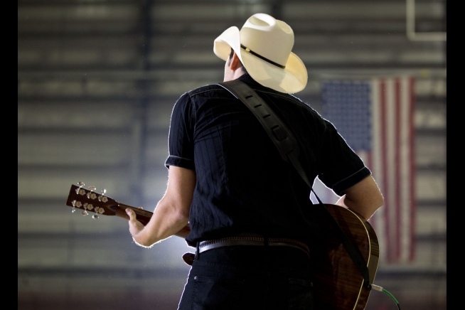 Country music singer Brad Paisley finishes his set at a rally for U.S. troops at Bagram Airfield in Bagram, Afghanistan, Sunday, May 25, 2014. (Official White House Photo by Pete Souza)