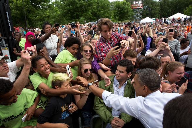 President Barack Obama greets audience members after he delivers remarks on the economy, at the Lake Harriet Bandshell in Minneapolis, Minn., June 27, 2014. (Official White House Photo by Pete Souza)