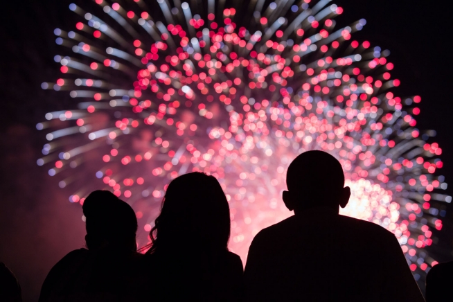 First Lady Michelle Obama, left, Malia Obama and President Barack Obama watch the Fourth of July fireworks from the roof of the White House, July 4, 2014. (Official White House Photo by Pete Souza)
