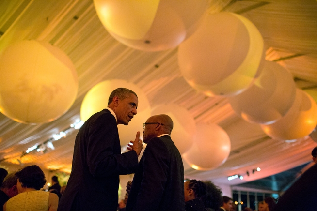 President Barack Obama talks with Jacob Zuma, President of the Republic of South Africa, at the U.S.-Africa Leaders Summit dinner on the South Lawn of the White House, Aug. 5, 2014. (Official White House Photo by Pete Souza)
