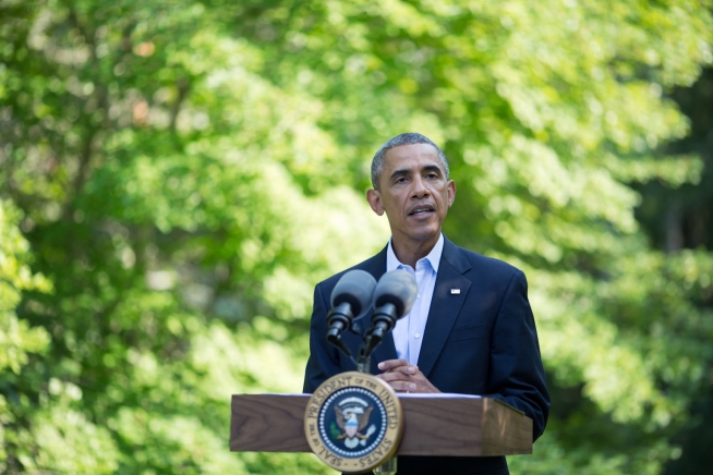 President Barack Obama makes a statement on the situation in Iraq from Chilmark, Mass., August 11, 2014.