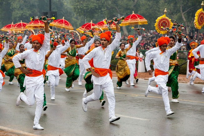 Entertainers pass by the reviewing stand during the parade. (Official White House Photo by Pete Souza)