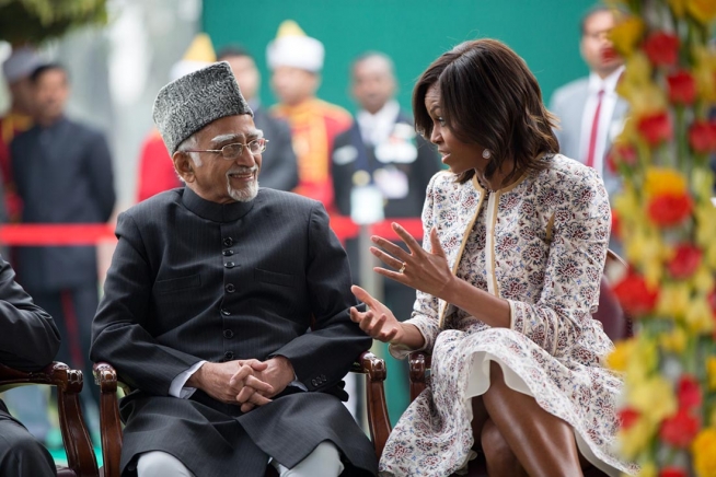 The First Lady talks with Vice President Ansari at the At Home Reception. (Official White House Photo by Pete Souza)