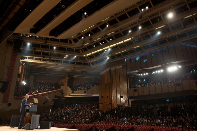 President Obama delivers remarks on India and America at the Siri Fort Auditorium in New Delhi. (Official White House Photo by Lawrence Jackson)