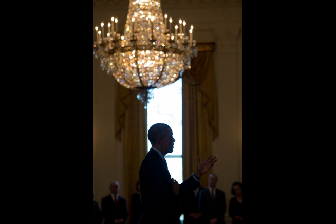 President Barack Obama speaks to Senate Youth Program participants in the East Room of the White House, March 12, 2015. (Official White House Photo by Pete Souza)