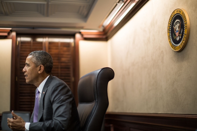 President Barack Obama participates in a secure video teleconference with European leaders to discuss Ukraine and global security issues, in the Situation Room of the White House, March 3, 2015. (Official White House Photo by Pete Souza)