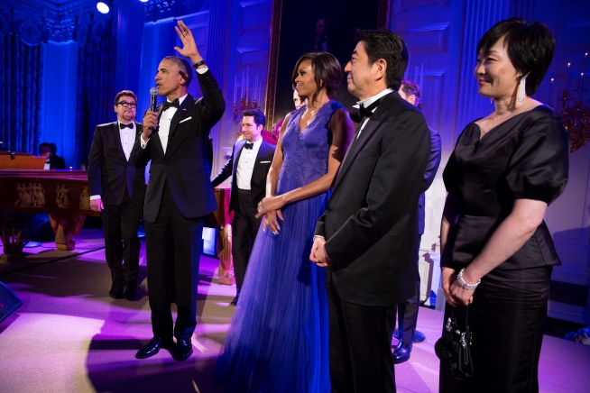 The President bids farewell to the State Dinner guests. (Official White House Photo by Pete Souza)