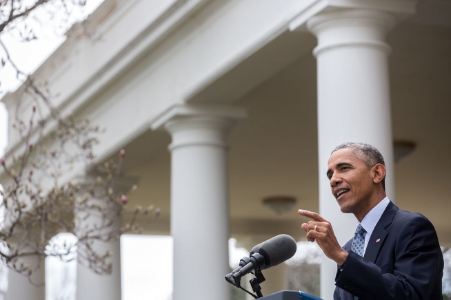 President Barack Obama delivers a statement on the Joint Comprehensive Plan of Action regarding the Iran Nuclear Program, in the Rose Garden of the White House, April 2, 2015.