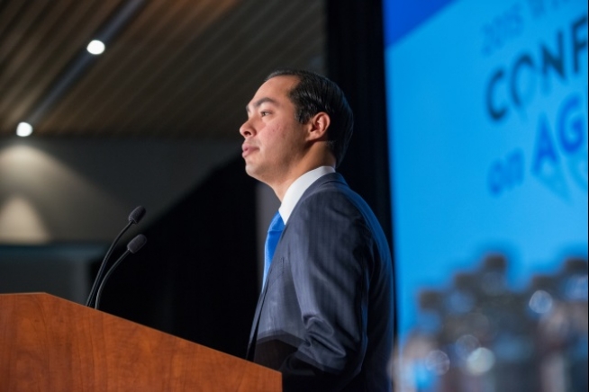 Secretary Julián Castro speaks at a regional forum in Cleveland, Ohio as part of this year’s White House Conference on Aging, April 27, 2015.