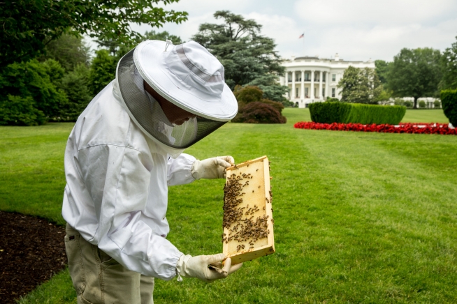 Beekeeper Charlie Brandts works with the beehive on the South Grounds of the White House, May 29, 2015. (Official White House Photo by Pete Souza)