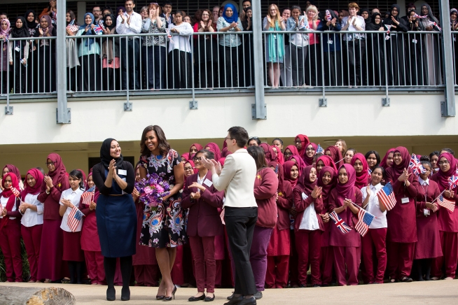 The First Lady is presented with flowers. (Official White House Photo by Amanda Lucidon)