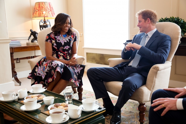 The First Lady meets with Prince Harry for tea to discuss the Let Girls Learn initiative and support for veterans, at Kensington Palace in London, June 17, 2015. (Official White House Photo by Amanda Lucidon)