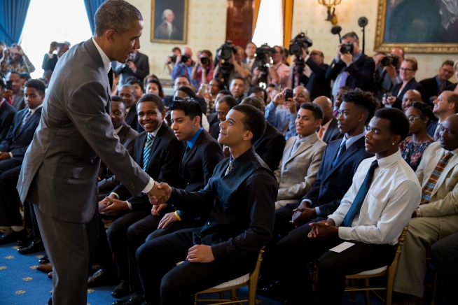 President Obama congratulates mentees following his remarks at the Mentorship and Leadership graduation ceremony