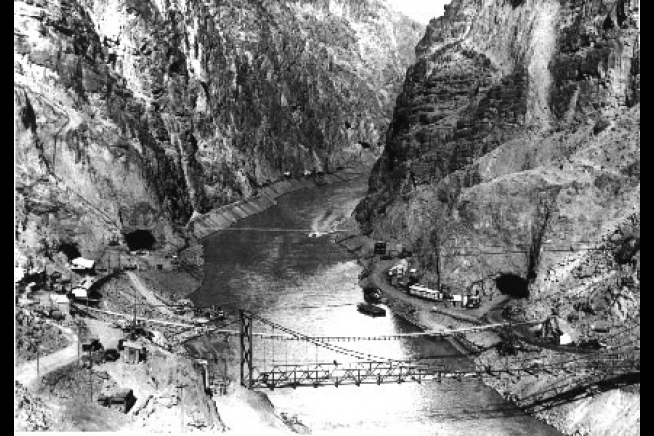 Early construction in Black Canyon (Department of Interior Bureau of Reclamation)