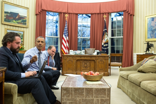 President Barack Obama works on the State of the Union address with Director of Speechwriting Cody Keenan and Ben Rhodes, Deputy National Security Advisor for Strategic Communications, in the Oval Office Jan. 11, 2016. (Official White House Photo by Pete Souza)