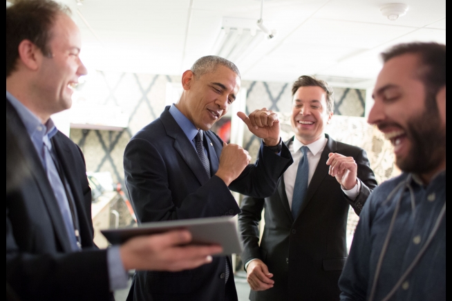 President Barack Obama jokes backstage with Jimmy Fallon before filming The Tonight Show with Jimmy Fallon in New York, N.Y., June 8, 2016. (Official White House Photo by Pete Souza)