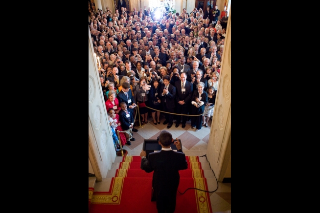 President Barack Obama delivers remarks during a reception for members of Federal Judge Association in the Grand Foyer of the White House, May 24, 2010. (Official White House Photo by Pete Souza)