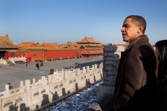 President Barack Obama looks out over the Forbidden City in Beijing, China.