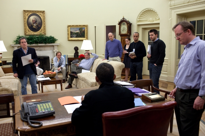 “It was a Sunday night in the Oval Office. The auto task force listened to the President before he made phone calls to alert key people about his plan to set deadlines for General Motors and Chrysler overhauls that was to be announced the next morning.”