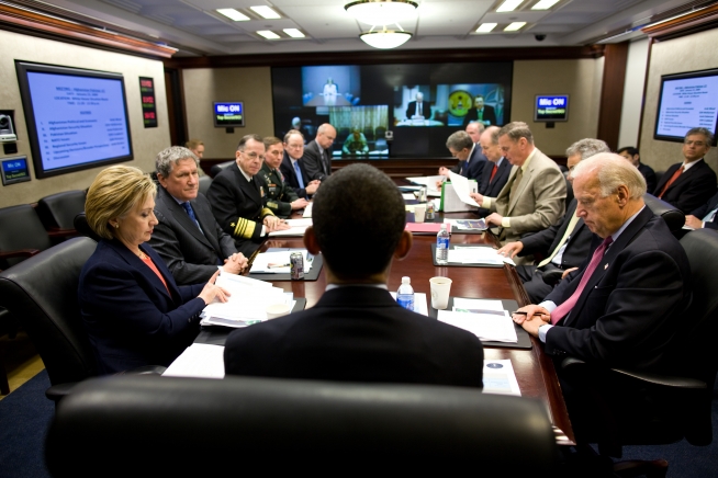 “The President meets with his national security and intelligence team in the Situation Room of the White House for the first time.”