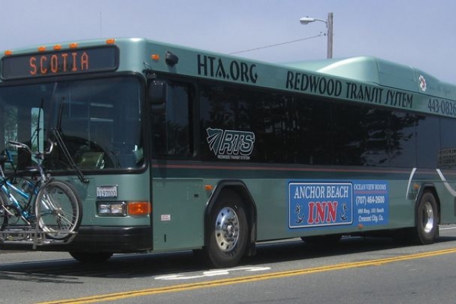 This Gillig hybrid-electric rolls for the Redwood Transit System,