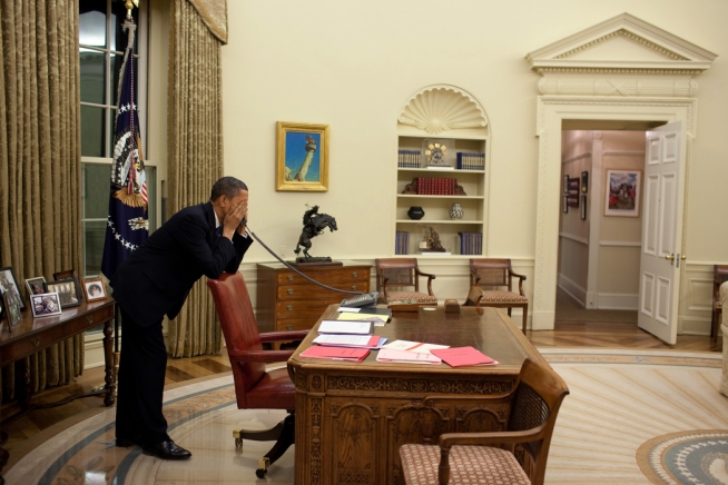 President Barack Obama calls a Member of Congress to discuss health care reform in the Oval Office, March 19, 2010. (Official White House Photo by Pete Souza)