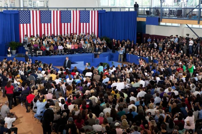 President Barack Obama holds a town hall meeting at the University of New Orleans in New Orleans, La., Oct. 15, 2009.