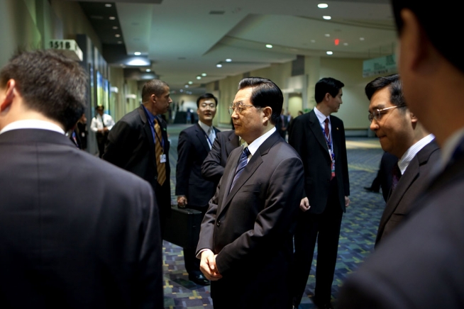 President Hu Jintao of China waits in a hallway before the start of a bilateral meeting with President Barack Obama, during the Nuclear Security Summit at the Washington Convention Center in Washington, D.C.,