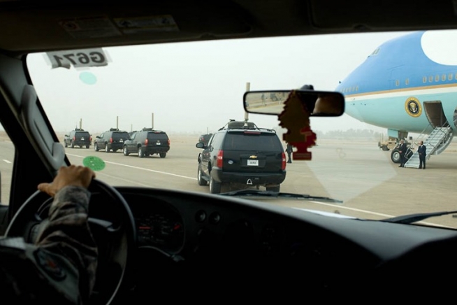 President Barack Obama's motorcade leaves Baghdad International Airport Tuesday, April 7, 2009, headed for Camp Victory in Baghdad, Iraq.