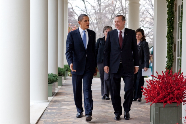 President Barack Obama walks along the Colonnade at the White House with Prime Minister Recep Tayyip Erdogan of Turkey, Dec. 7, 2009. (Official White House Photo by Pete Souza)