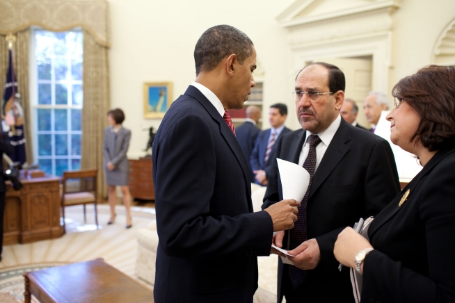 President Barack Obama confers with Iraqi Prime Minister Nouri al-Maliki in the Oval Office, Oct. 20, 2009. (Official White Photo by Pete Souza)