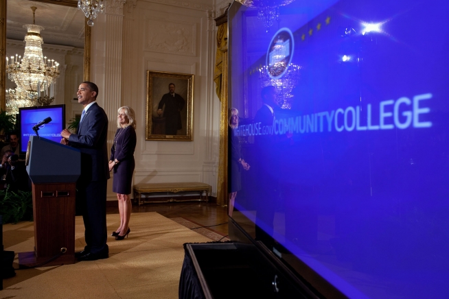 President Barack Obama and Dr. Jill Biden take part in the White House Summit on Community Colleges, highlighting the critical role that community colleges play in developing America’s workforce and reaching our educational goals, in the East Room of the White House,