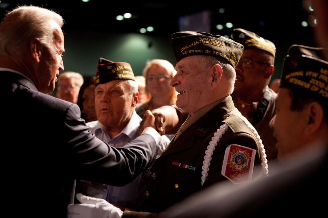 Vice President Joe Biden shakes hands after addressing the 111th Veterans of Foreign Wars Convention in Indianapolis, Indiana