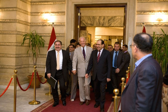 Vice President Joe Biden meets with Prime MInister Nouri-al-Maliki at the Prime Minister's Residence in Baghdad, Iraq, Jul 4, 2010. (Official White House Photo by David Lienemann)