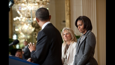 Posted by on February 15, 2012 at 7:05 PM EDTEarlier today, I had the great privilege of joining the First Lady, Dr. Biden, members of Congress, the Secretary of Defense, the Chairman of the Joint Chiefs of Staff, the Joint Chiefs and state legislators at the Pentagon for a major announcement impacting our nation’s military spouses.