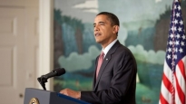 President Obama discusses Iran during his Press Conference at the White House on June 23, 2009. (public domain) الرئيس أوباما يتحدث عن إيران خلال مؤتمره الصحفي في البيت الأبيض يوم 23 حزيران/يونيو 2009